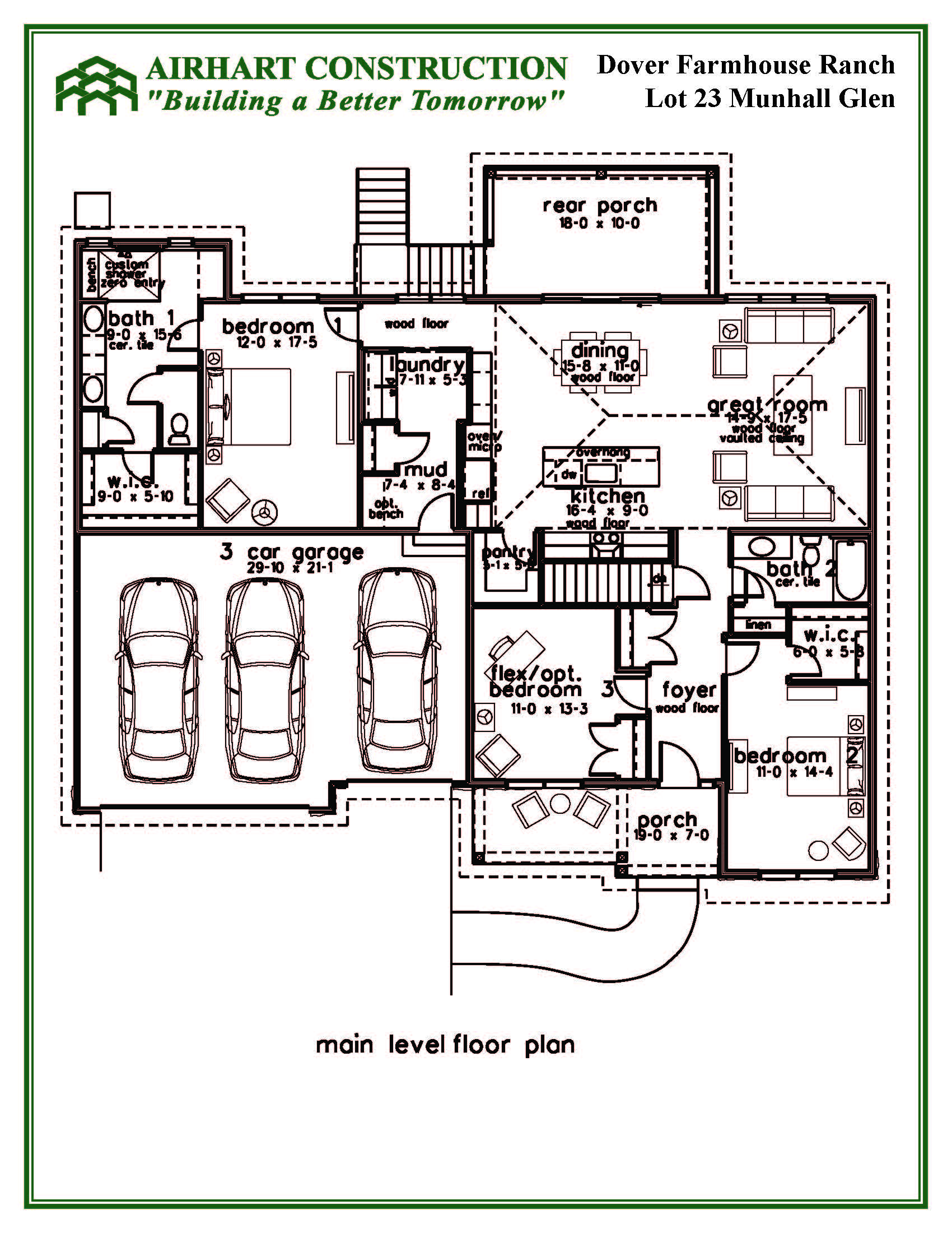 This Custom Dover features a farmhouse elevation with spacious front porch and modern amenities.